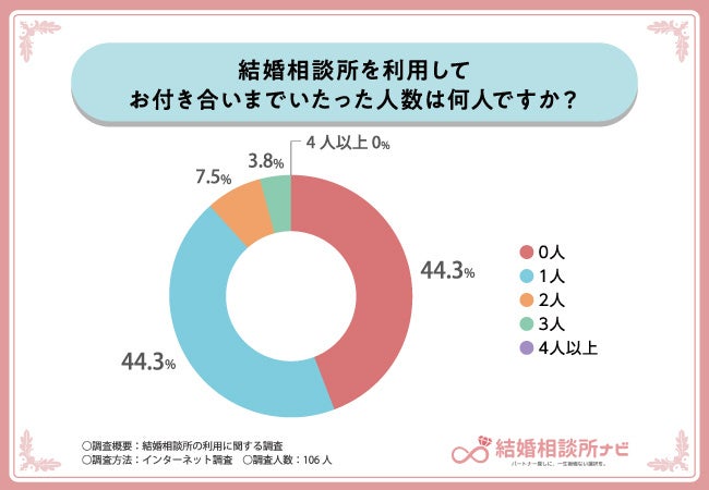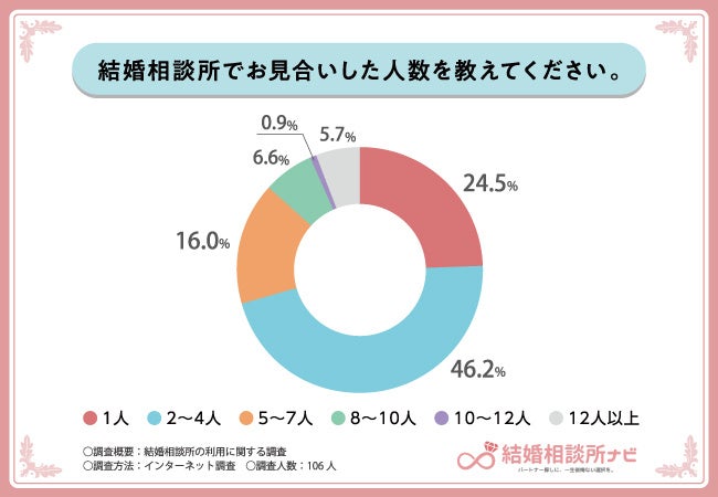 2〜4人が46.2%と最も多く、1人に留まらず複数人の方とお見合いできていることがわかりました。