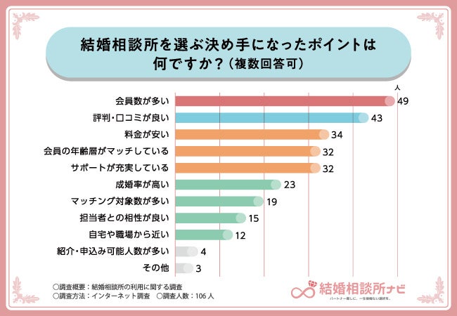 結婚相談所を選ぶポイントとして「会員数」や「口コミ」を重要視