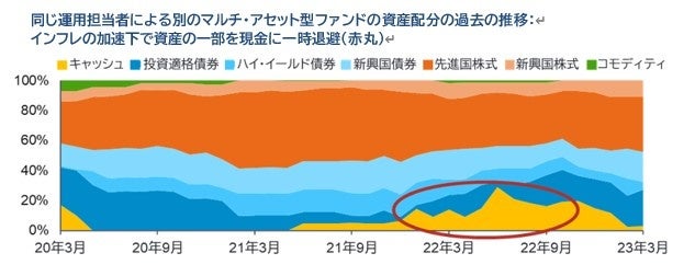 このたび設定するのは、フィデリティ・インターナショナル(以下「フィデリティ」)のボトムアップ・アプローチ(徹底した企業調査)をもとに、基本資産配分と戦略的な配分調整を行うマルチ・アセット戦略です。2%の物価上昇の環境下においても長期にわたって実質的に資産を増やすことができ、かつリスク・リターンの観点から運用効率が優れているとフィデリティが考える配分の目安、「債券75%:株式25%」を基本として運用します。一方で市場の上昇局面では、株式組み入れを引き上げ、下落局面ではキャッシュの配分を引き上げるなどの調整を行いながら、また商品価格の上昇局面ではコモディティの組み入れ、為替見通しに応じて為替ヘッジの調整などを柔軟に行うことで、資産を守り、リターン確保も狙います。