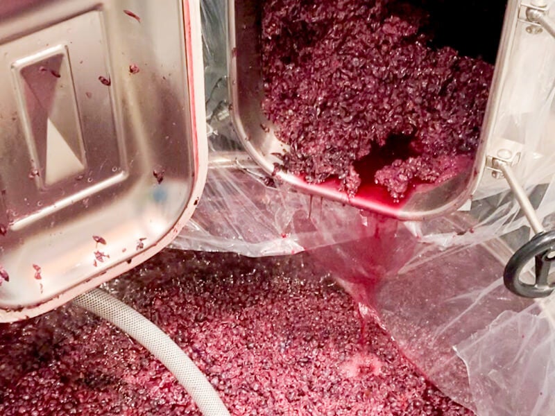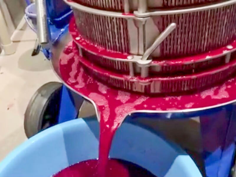 プレス機で圧をかけて果汁を絞りタンクに移します。