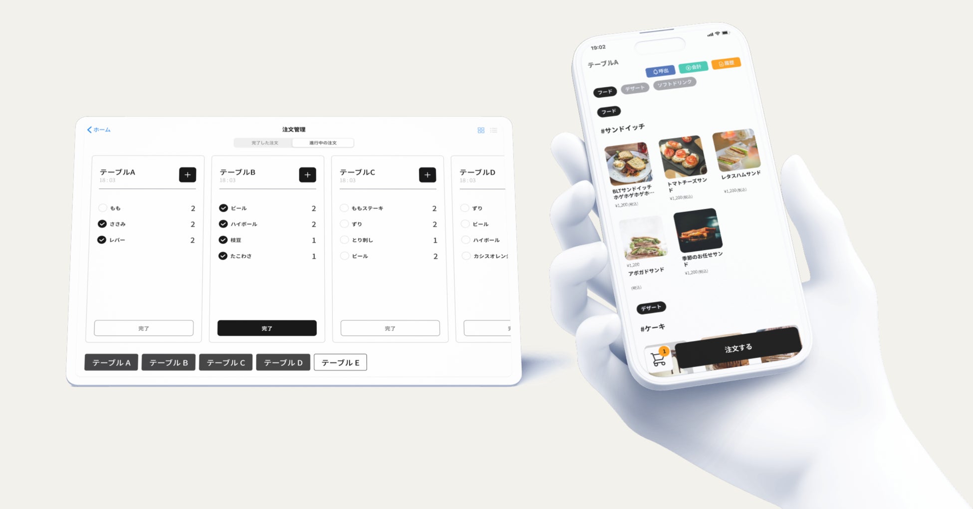 注文対応のデジタル・自動化による効率化で、ホールスタッフの半減が可能に