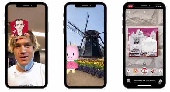 スマートフォンからInstagramのカメラ機能を使い、手軽に様々なARエフェクトを楽しむことができます。「ストーリーズ(Stories)」や 「リール(Reels)」とも相性が良く、SNSマーケティングや自宅でも使用可能。プロモーション方法として最適です。