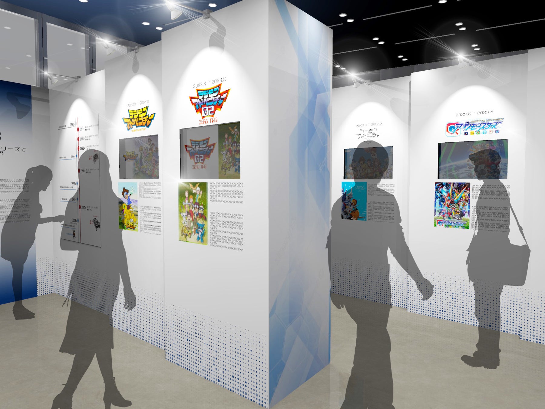 1999年に放送された「デジモンアドベンチャー」から、現在放送中の「デジモンゴーストゲーム」まで、歴代12作品のTVアニメーションの映像などを展示。同コーナーに全種展示されている「デジヴァイス」とともに、様々な物語で活躍した、沢山のデジモンたちから抜粋されたイラストレーション展示をご覧ください。また、展示後半パートでは、新作映画「デジモンアドベンチャー02(仮)」や、連載中の漫画「デジモンドリーマーズ」の展示コーナーも用意しています。