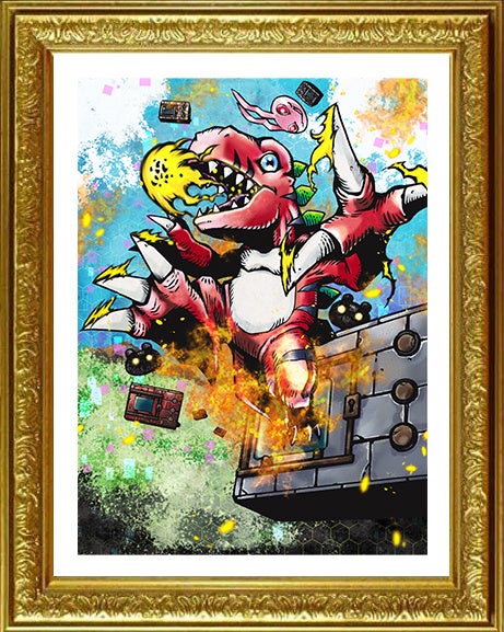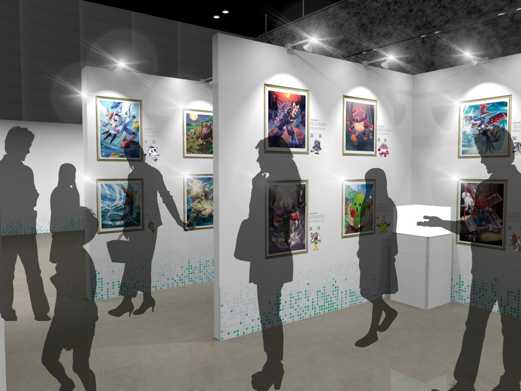 デジモンデザイナーである「渡辺けんじ」氏をはじめとしたイラストレータ―6名によって、本展示会のために描き下ろされた「デジタルモンスター」をテーマ・モチーフとした「25周年描き下ろしイラスト」12点を展示しています。また、「デジモンイラストレーションコンペティション」からは、グランプリ・優秀賞を受賞した8作品を展示しています。これらは、 2021年に日米同時に一般公募された作品で、本展示会のご来場者特典の「デジモンカードゲーム プロモーションパック」のイラストレーションにも採用されています。