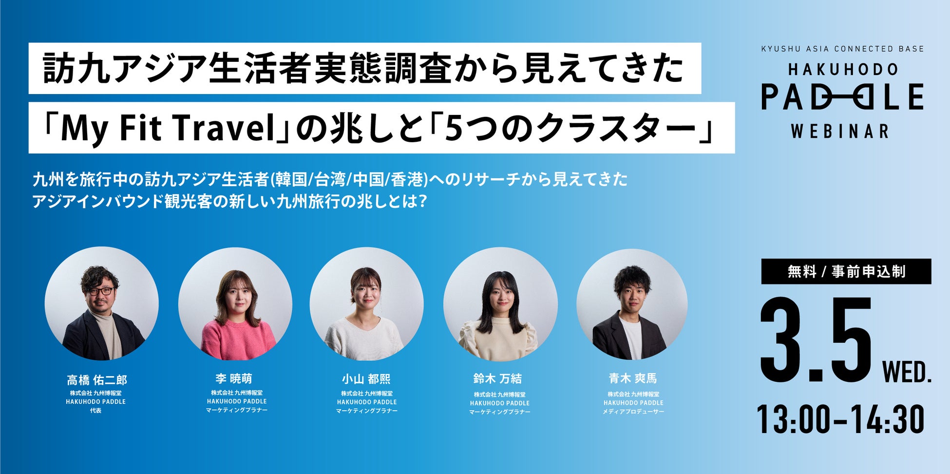今回、新たな手法でリサーチした訪九アジア観光客の価値観、旅行意識、行動ビッグデータと、それらをかけあわせた分析で見えてきた各エリア観光客の特徴や、九州を訪問するアジア観光客の5つのクラスターの詳細は、今後WEBサイト(https://h-paddle.jp/)にて随時情報を発信していきます。