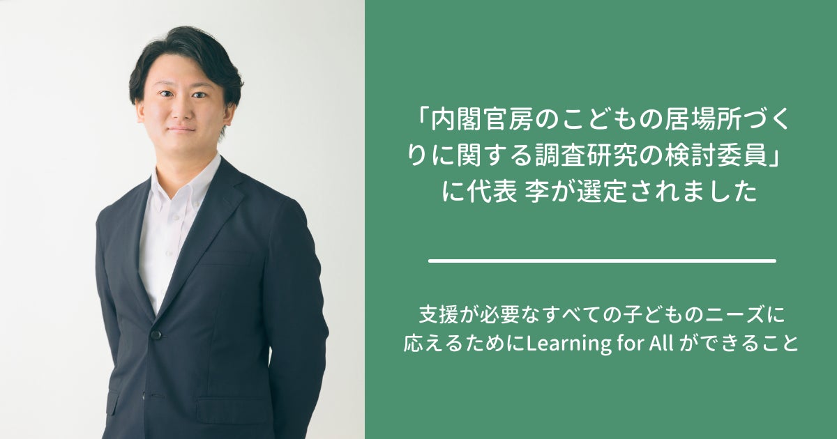 認定NPO法人 Learning for All 代表理事・李炯植が内閣官房のこどもの居場所づくりに関する調査研究の検討委員に選出されました