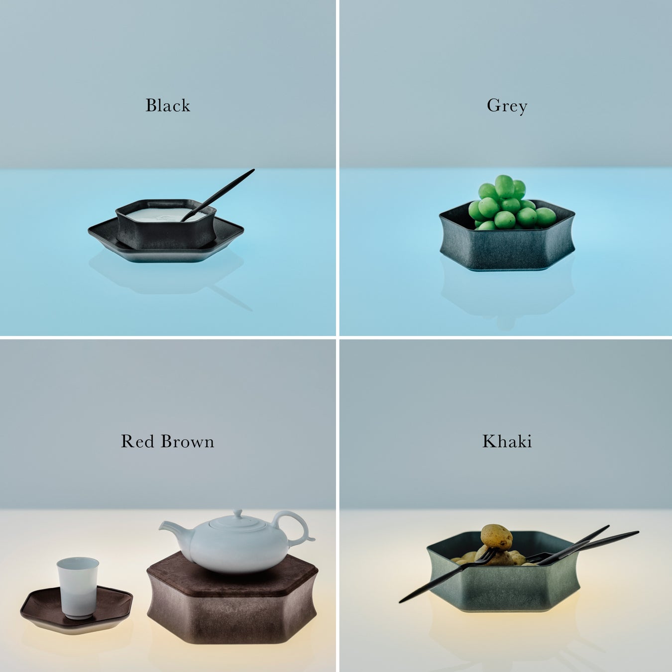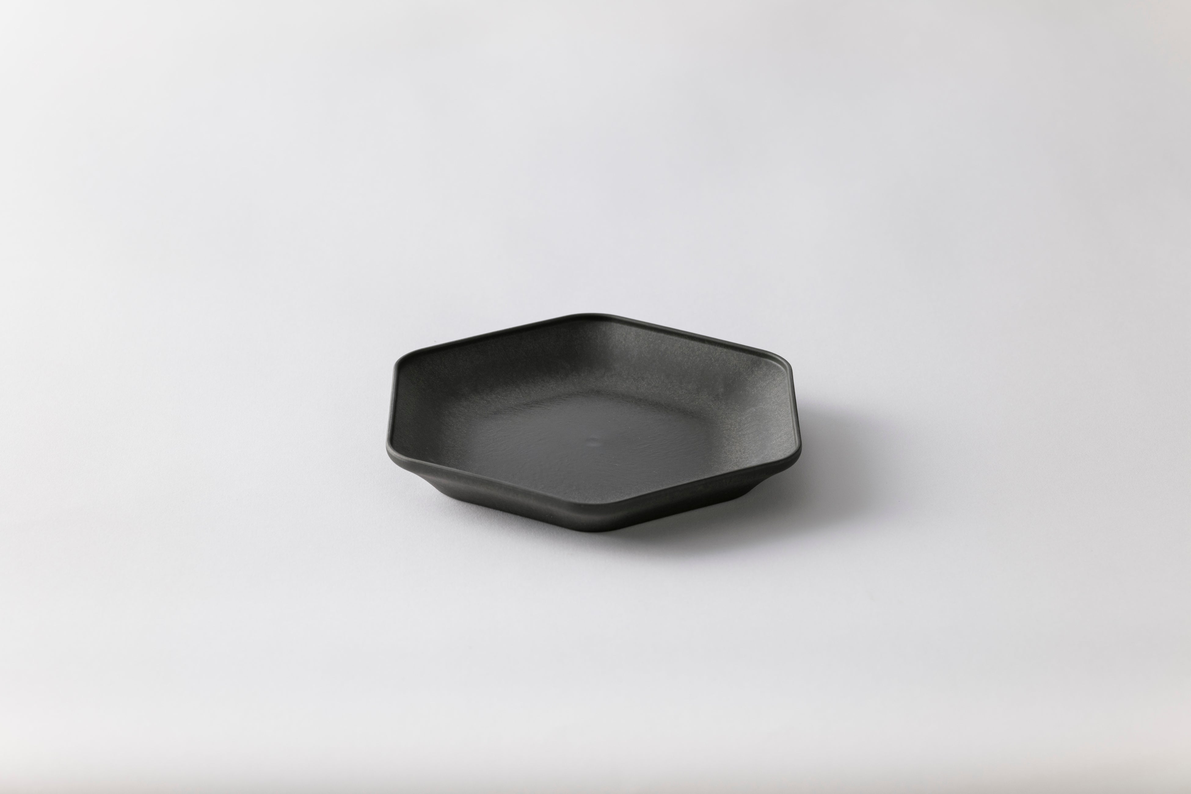 「平皿ロッカク」 プレートや取り皿としても、深鉢ロッカクの蓋としてもお使いいただけます。また、少し深さがあるので、汁気のあるお料理も盛り付けやすい形状。
