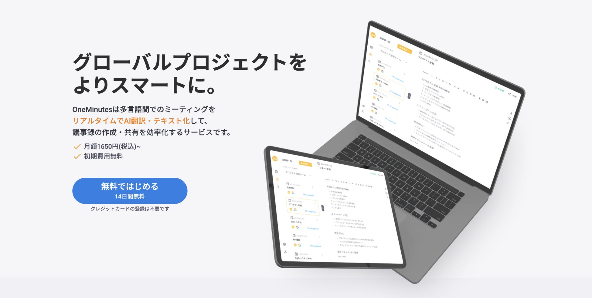 事業内容 :議事録DX SaaS One Minutesの開発・運営