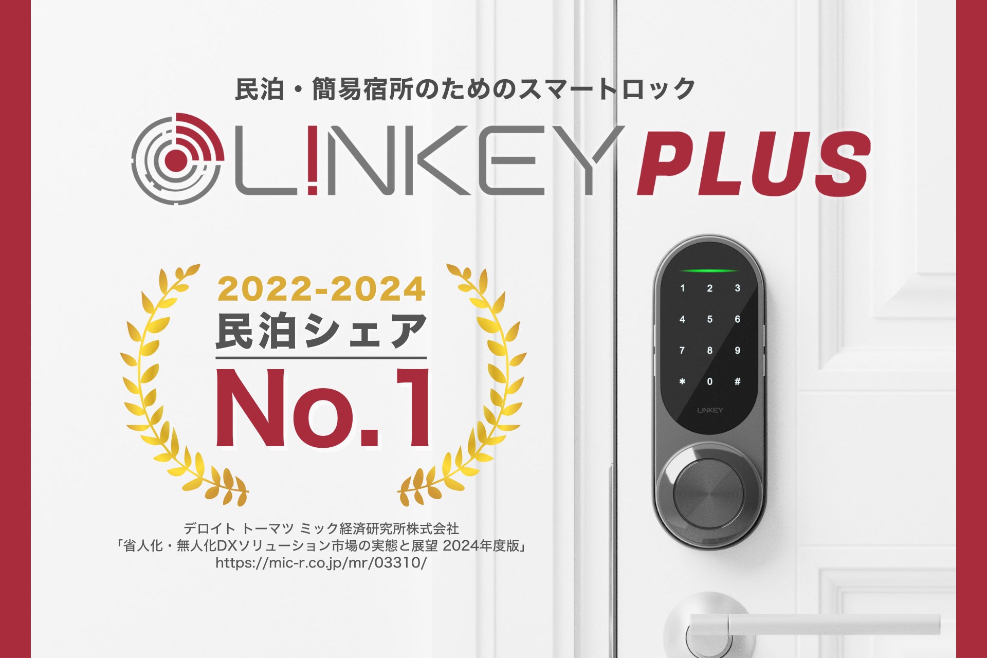 株式会社ユーエムイーのLINKEY Plus、民泊・簡易宿所向けスマートロック市場で3年連続シェアNo.1を獲得