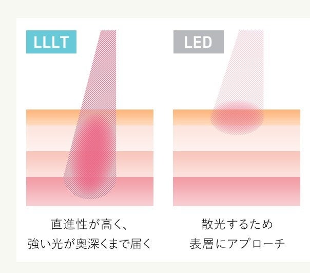 LLLTは”Low Level Laser Therapy”の頭⽂字をとったもので、低出⼒光線という意味になります。