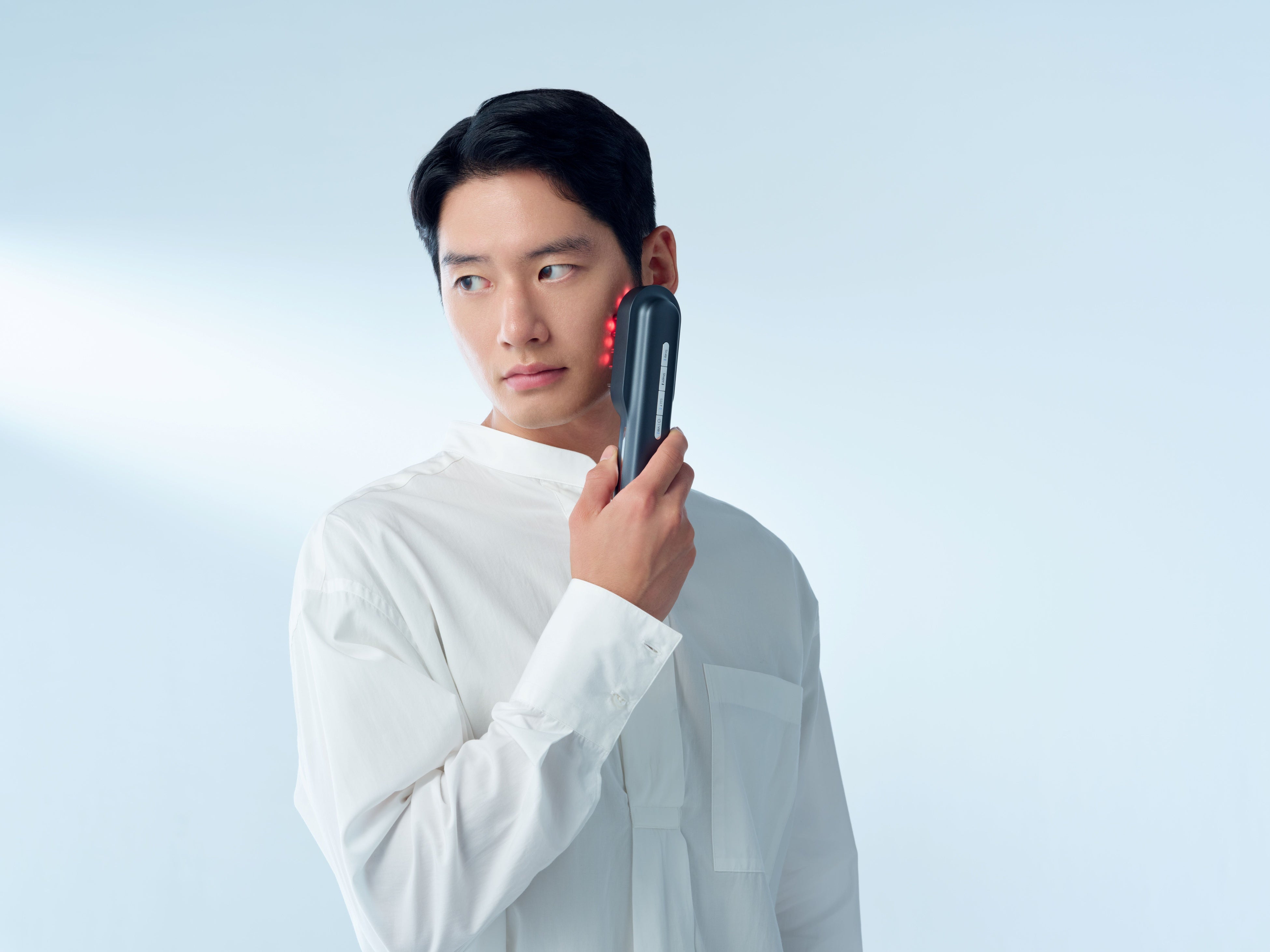 様々な分野でも活躍している技術で、通常のレーザーとは異なり、組織への熱損傷を与えず肌の細部へ光エネルギーを伝達します。レーザー光により組織を破壊せず、⽇焼けしている⽅、敏感肌の⽅でも使⽤可能です。LEDのように拡がらず、光の直進性が高いことが特徴です。この特殊な光により、頭皮環境や肌を整えます。