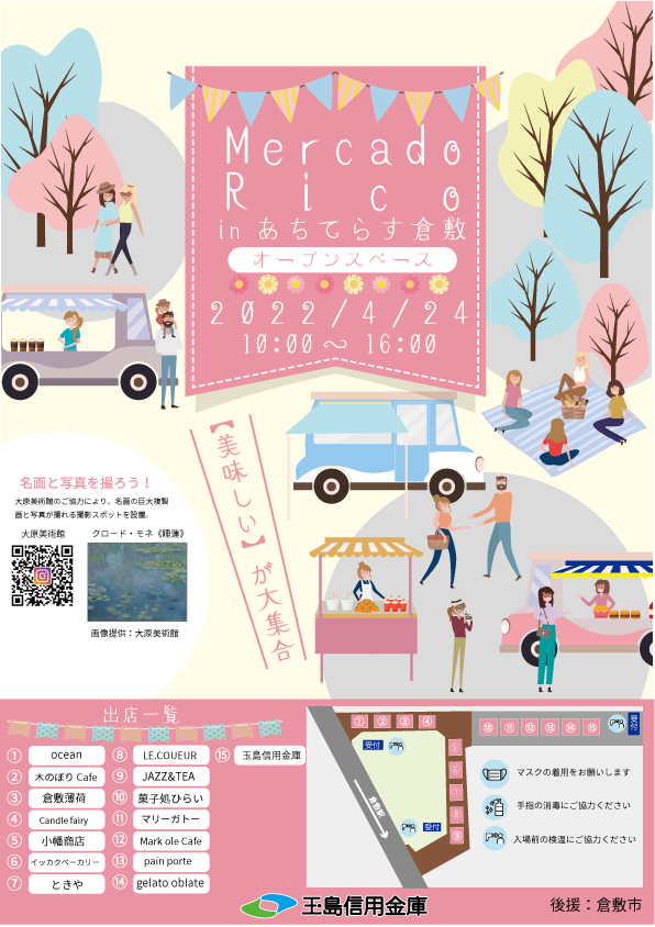 「Mercado Rico」と題して、キッチンカーを含む15店が出店するイベントを2022年4月24日(日)にあちてらす倉敷オープンスペースにて開催いたしました。