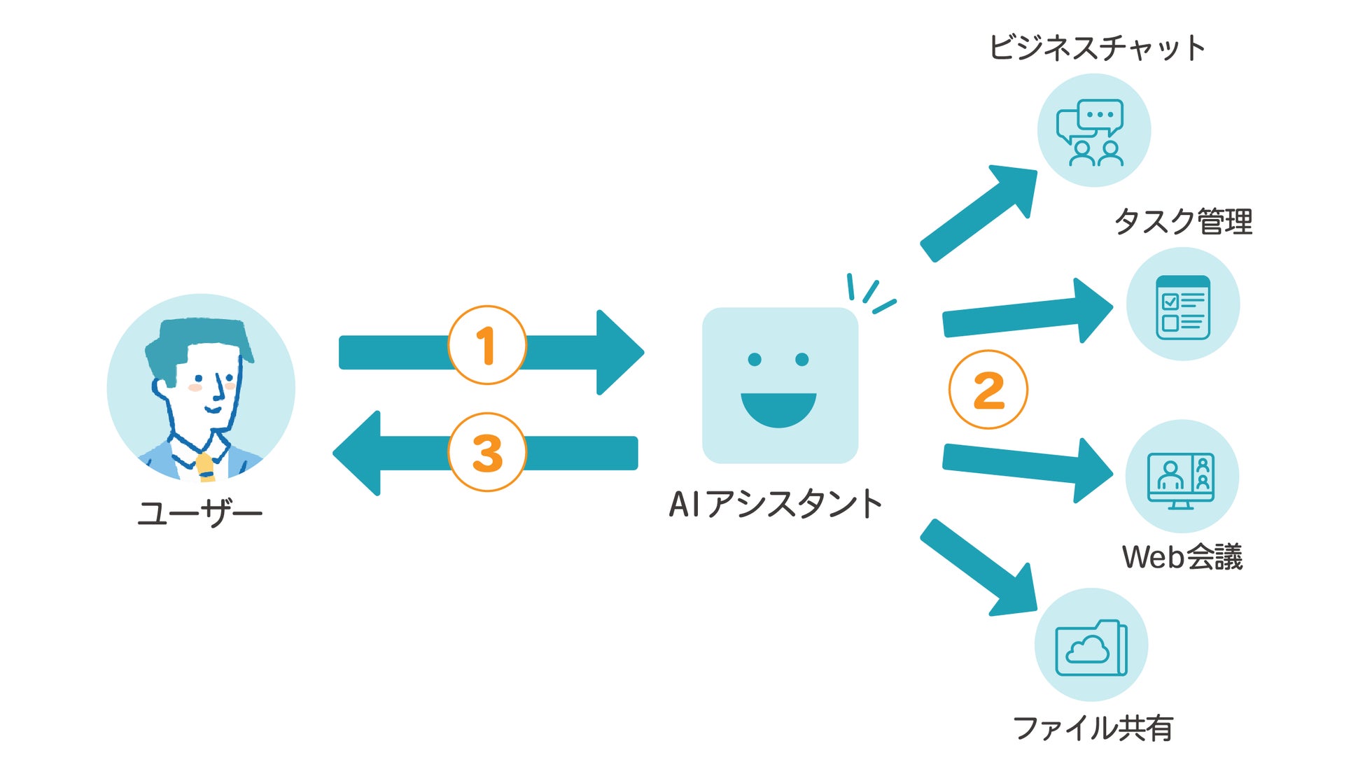 チャット ファイル共有 音声通話 AI議事録 AIアシスタント |