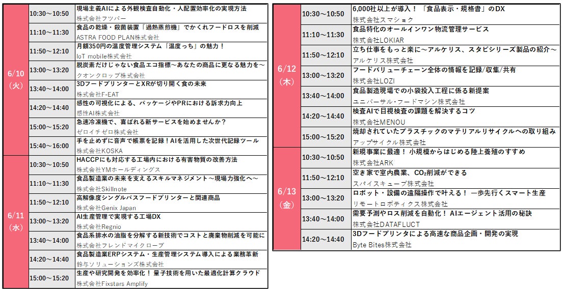 AIや量子コンピューティングを活用した検査・生産管理、3Dフードプリンティング、持続可能な資源循環、作業支援テクノロジー、陸上養殖や室内農業など、食の可能性を広げる最先端技術を提案する数々の企業が出展します。