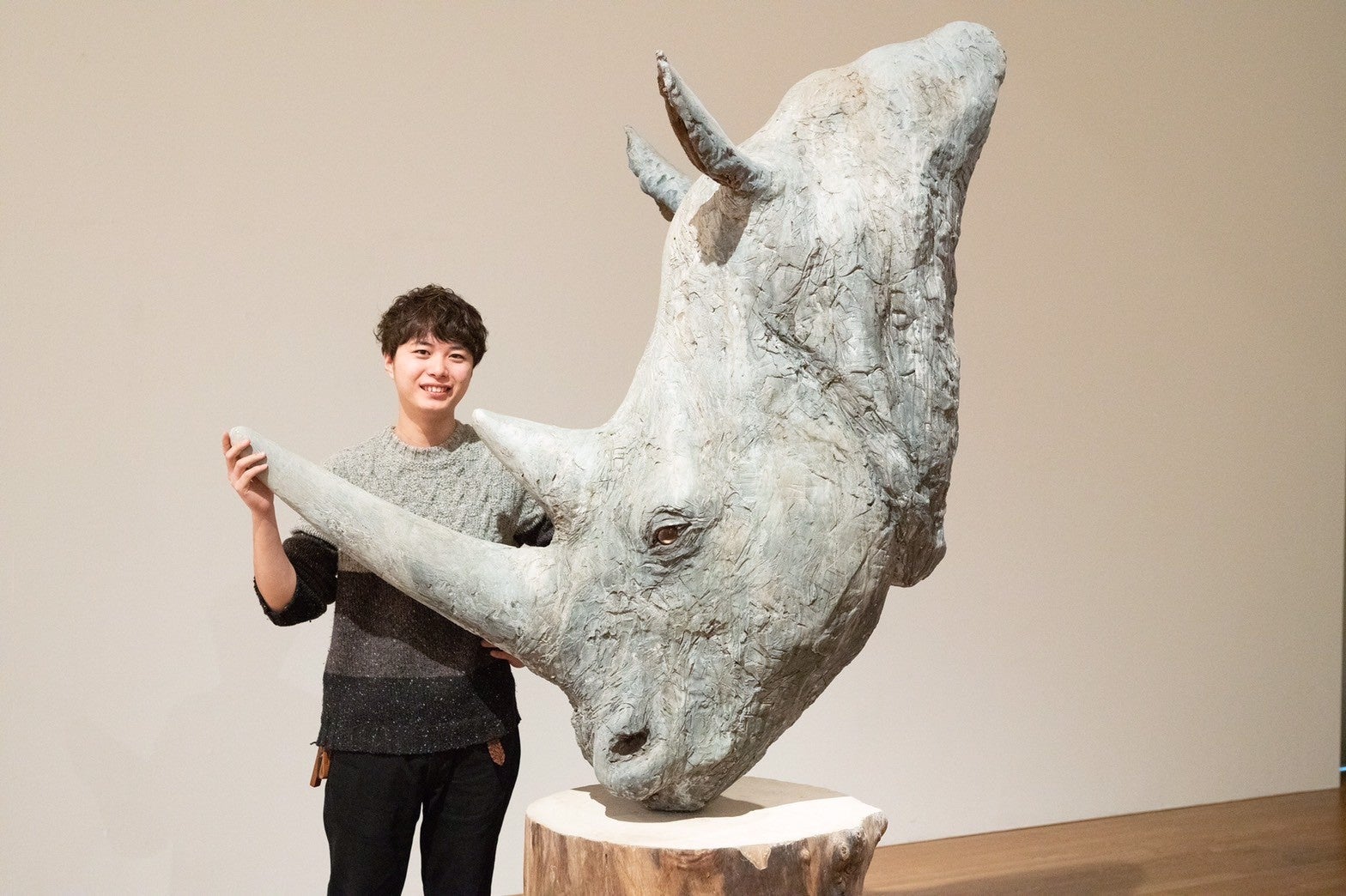 アフリカ大陸中央部に生息していたキタシロサイは、環境破壊、内戦、乱度などにより1990年代に大きく数を減らし、2008年に野生下で絶滅した。世界に残り3頭であったが、その内1頭の最後のオスが2018年に亡くなった。当時、生物絶滅のニュースをリアルタイムに知り、非常にショックを受けた。大学院の集大成として作品として修了制作の題材にすることに決めた。