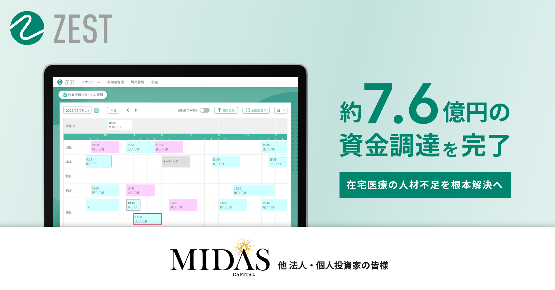 在宅医療業界の人材不足を根本解決するゼスト、約7.6億円の資金調達を実施