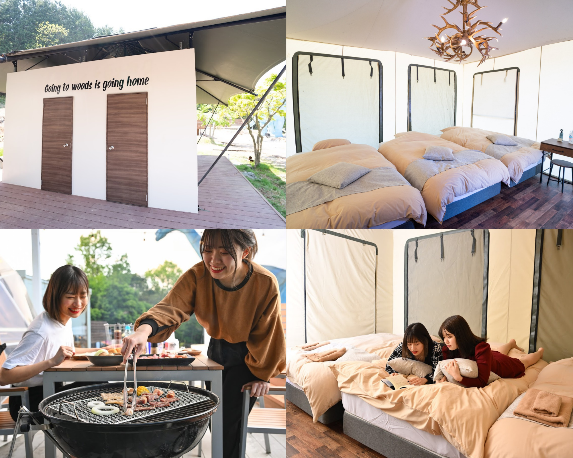 設備:専用バレルサウナ・専用トイレ・専用ユニットバス、サファリテント(シモンズ社製特注シングルベッド3台)