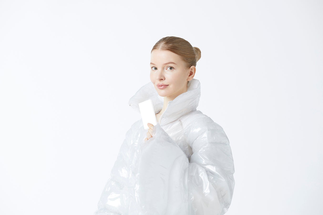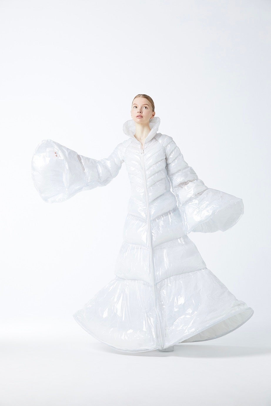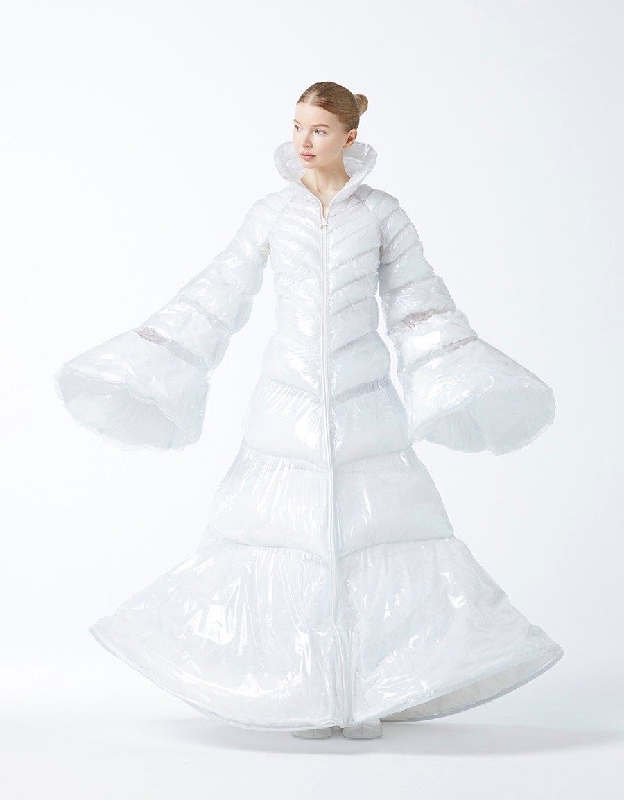 多くの方に注目頂いております、弊社断熱素材「SUFA」とアートのコラボレーションプロジェクト AIR NEW ERAについて、この度第三弾作品となる、弊社エアロゲル「SUFA」を内容物として使ったダウンコートのようなドレス「Vetro Bianco」を、世界限定一点のアートピース作品として販売開始致します。