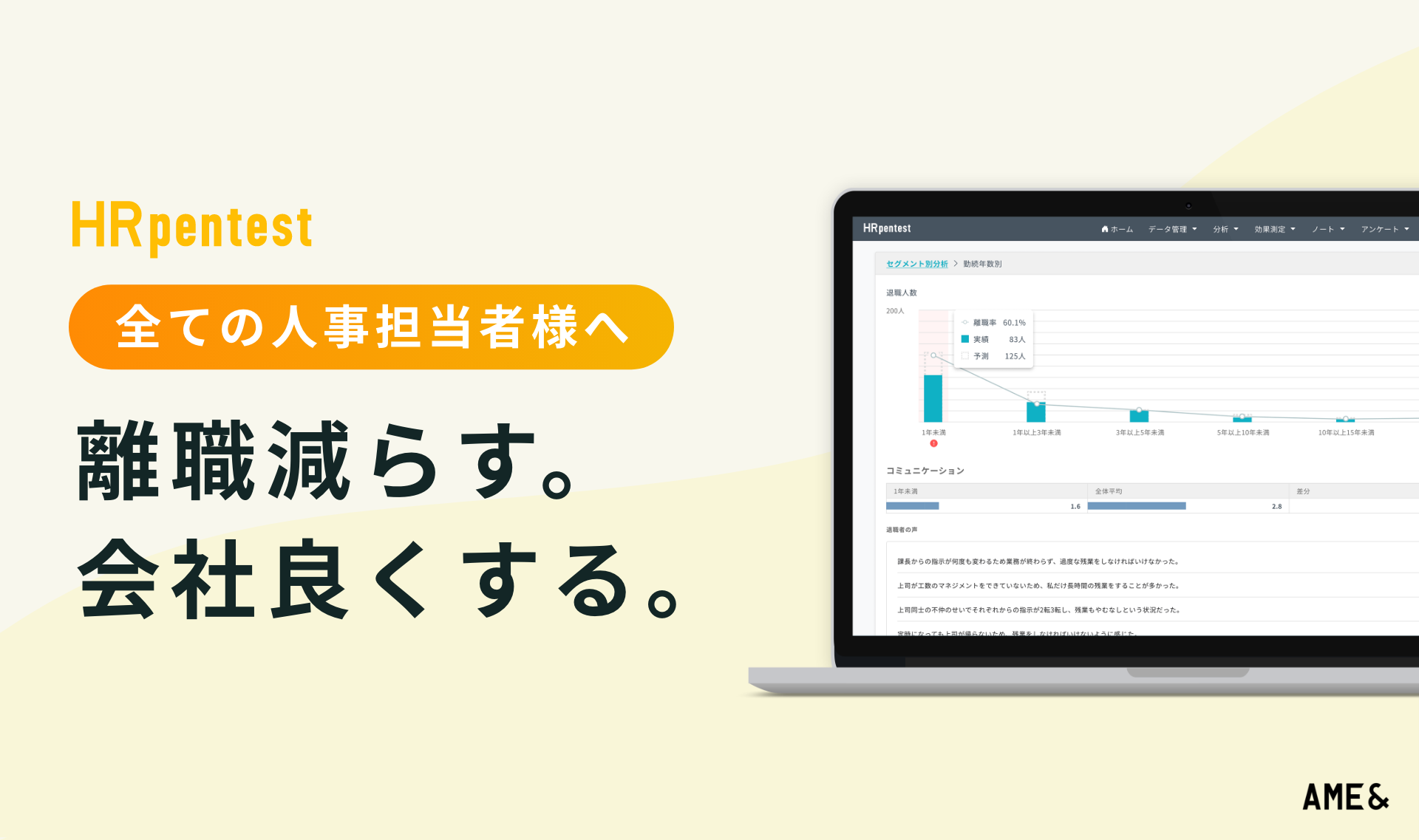 『HR pentest』はデータドリブンにリテンション施策を導き出し、組織全体の納得感を醸成しながら施策を推進するためのSaaSです。