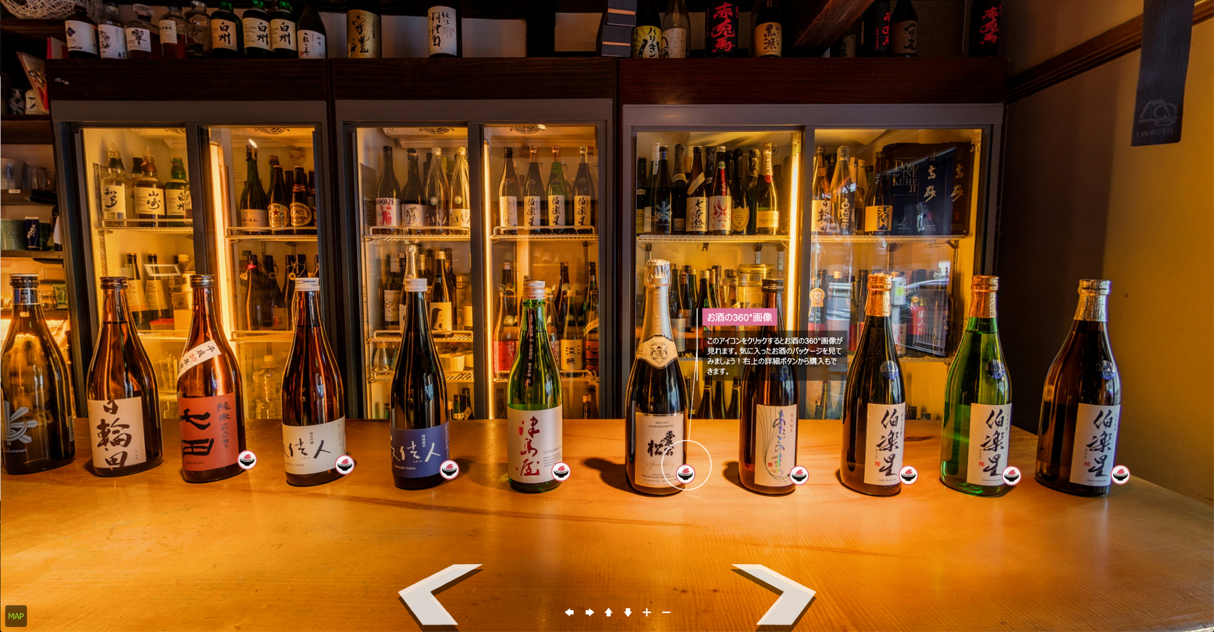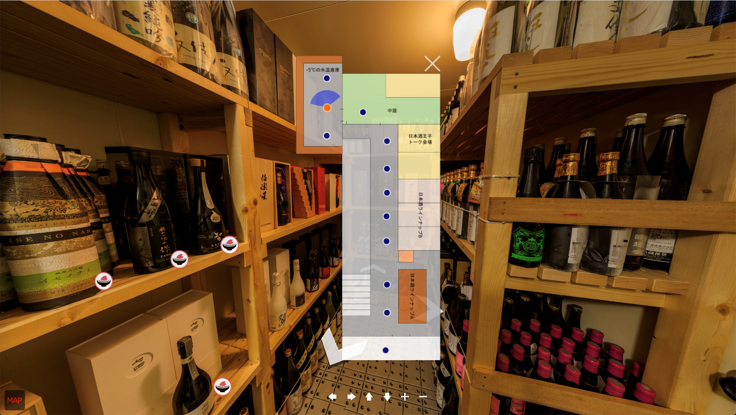 - 実際に店舗の中を歩くように、おしゃれな店内を移動しながら日本酒を探すことができる。