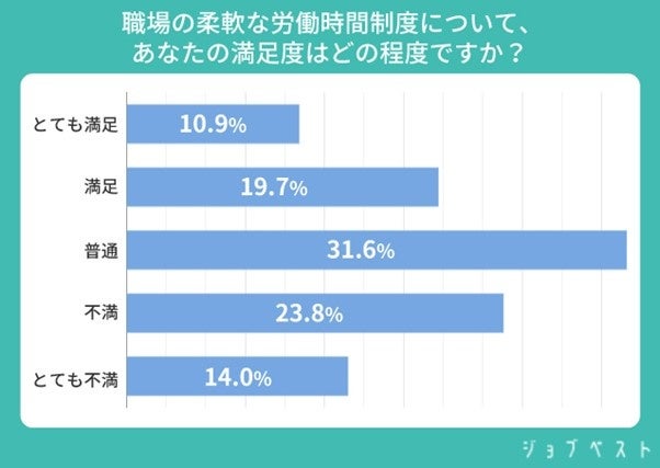 約3割が柔軟な労働時間制に満足している一方で不満を感じている方のほうが若干多い