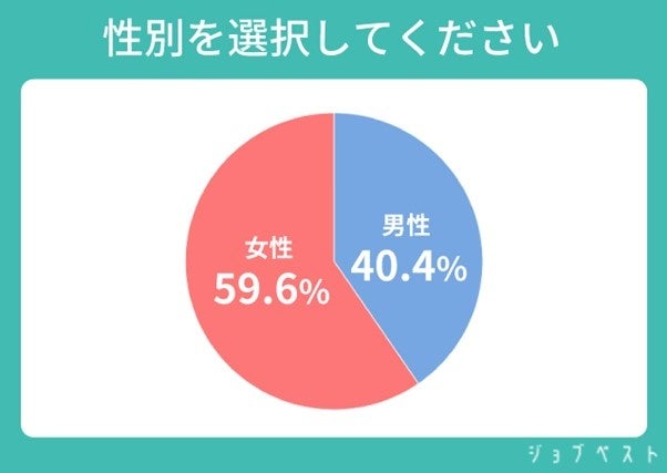 性別について質問すると、59.6%の方が女性でした。男性は40.4%と女性よりも少なく、今回のアンケートの回答者は女性が多めということが分かります。