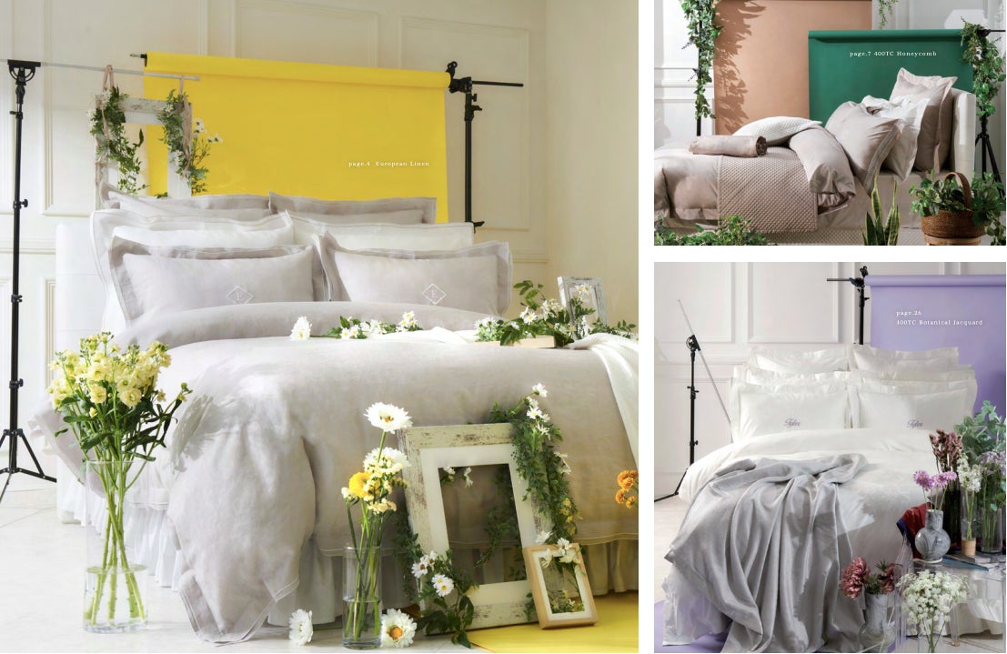 2024 Spring&Summer Dramatic Ordinaryでは、「ヨーロピアンリネン」「400TCボタニカルジャガード」などのシリーズを中心に、春らしい新鮮なビジュアルでご紹介。その他、イタリアンコレクションなどの人気シリーズもそれぞれの世界観を感じられるページ構成でデザインしました。