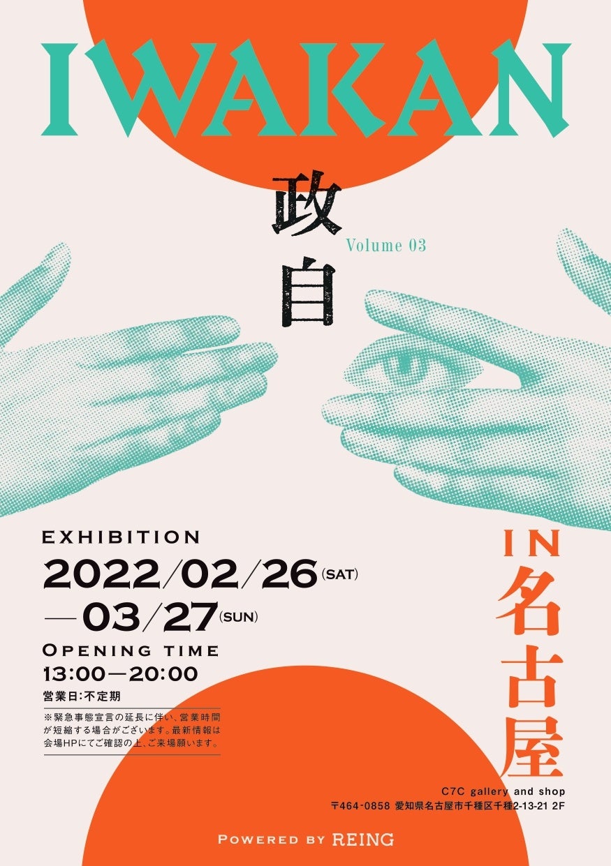 株式会社ニューピース(代表取締役:高木新平)において、多様な「個」のあり方とその意思を祝福し、二元論に囚われない表現を追求するCreative Studio REING(リング)。2021年9月に発売した雑誌『IWAKAN Volume 03|特集 政自』は、ジェンダーと政治と個人の関係性を問い直す1冊。 政治のアンバランスに様々な角度から“違和感”を問いかけています。本誌と連動した展示会を再び名古屋で開催いたします。名古屋市千種区のC7C gallery and shopにて、本誌に登場する作品の映像作品や本誌アザーショット写真などを展示に加え、編集者と書店オーナーを招いたトークイベントを実施します。