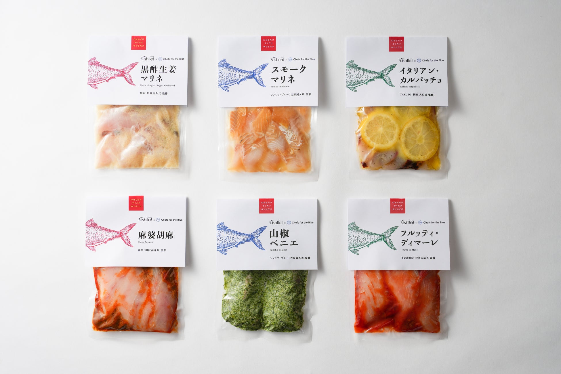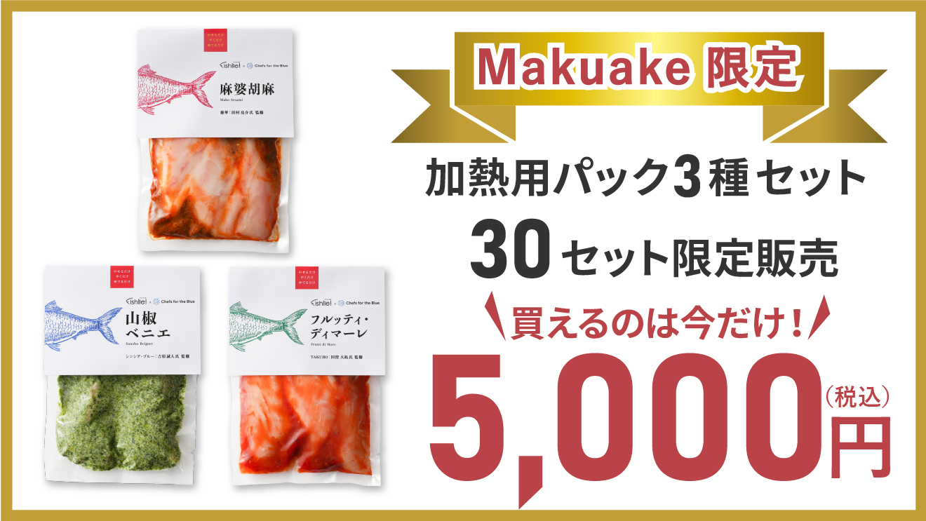 ミシュラン一つ星獲得のイタリアン「TACUBO」の田窪シェフ、ミシュラン一つ星獲得の中華「慈華」の田村シェフ、フレンチ「シンシア ブルー」の吉原シェフが手掛け、「未利用魚」を使用した、家庭で簡単に出来る極上の魚料理を【Makuake限定】で先行販売いたしました。皆様からの「応援購入」をお待ちしております。