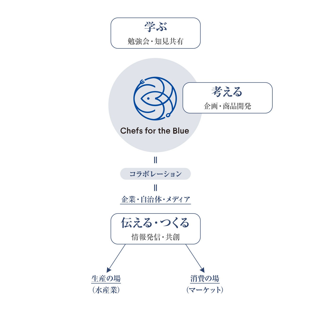 NGOや研究者、サステナブルシーフードを専門とするコンサルティングファーム、政府機関などから学びを得ながら、豊かな海を取り戻し、食文化を未来につなぐことを目指して、自治体・企業との協働プロジェクトやフードイベントなど様々な活動を行っています。