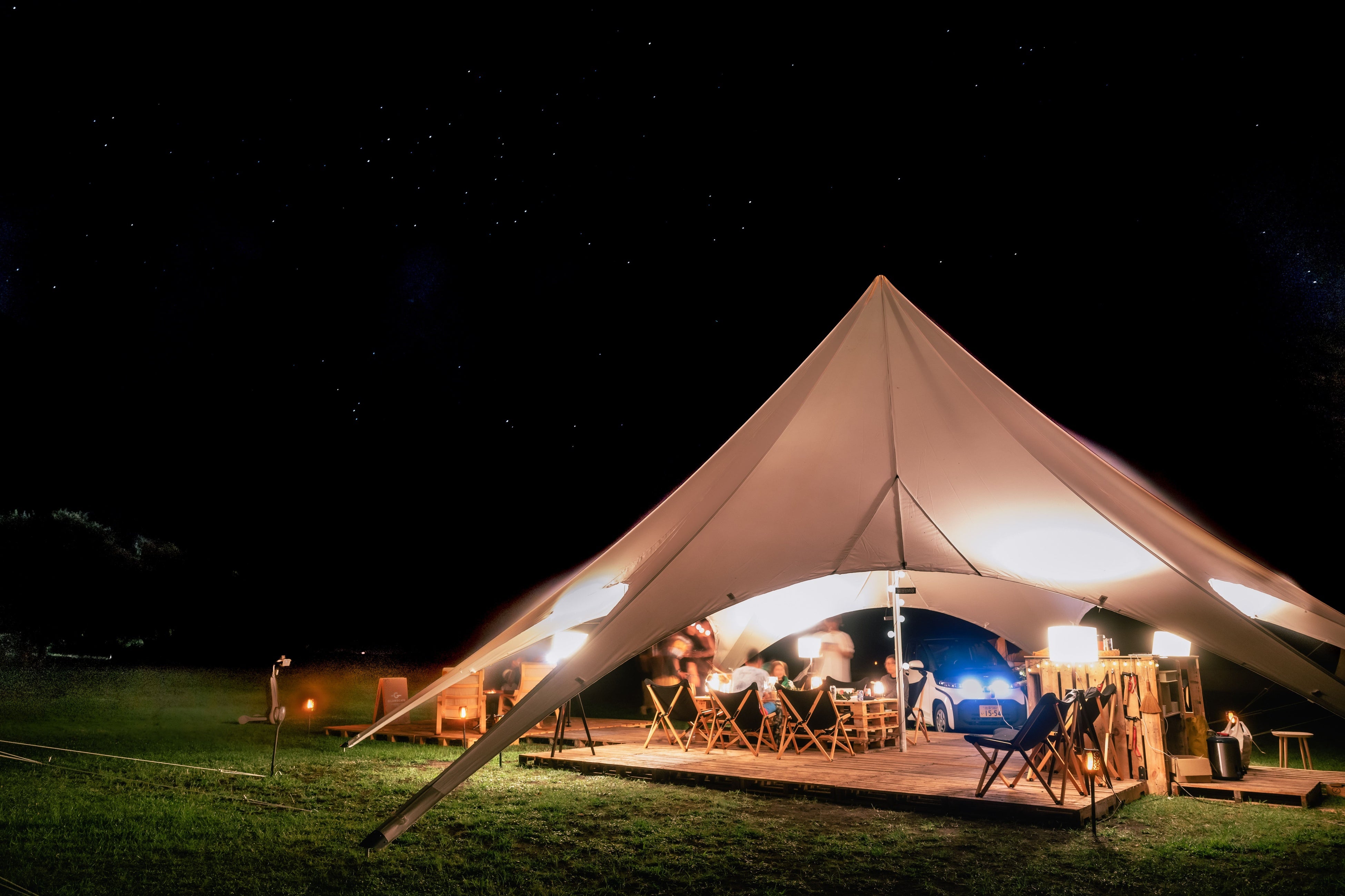 | 場内設備 | 客室テント(4室)、ファイヤープレース、パーソナルモビリティC⁺walk T(8台)、超小型電気自動車 C+pod(2台)、他 |