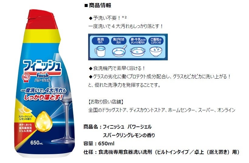 レキットベンキーザー・ジャパン株式会社(本社:東京都品川区東五反田/代表取締役:スチュアート・ウィザビー) が展開する食洗機洗剤ブランド「フィニッシュ」は、2024 年9 月24 日(火)に新商品「パワージェル」を発売致します。ブランドの“食器洗いの負担を軽減する”という使命のもと、一度洗いで汚れを落とす洗浄力を備えたジェルタイプの洗剤です。