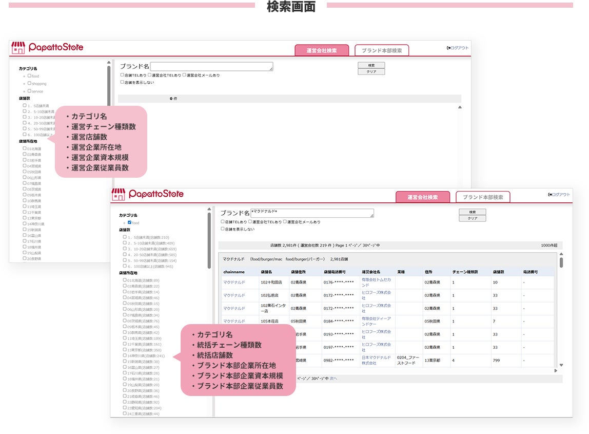 今回の更新では、店舗やブランドを運営する企業を階層別に整理した、これまでにない新しいデータ構造をさらに強化しております。