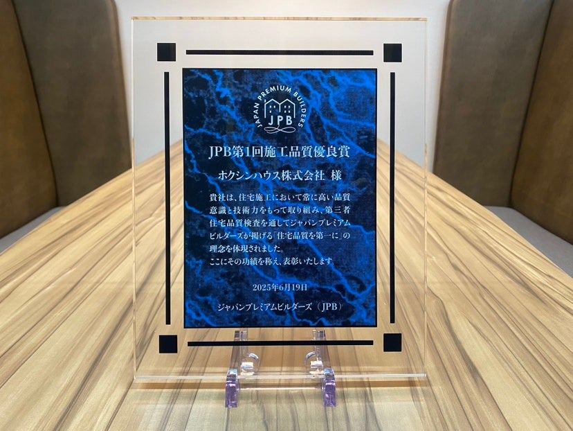 高性能住宅の設計・施工を手がけるホクシンハウス株式会社(本社:長野県長野市、代表取締役:木村 大樹)は、住宅品質を第一に掲げるジャパンプレミアムビルダーズ(事務局:株式会社家守り 以下JPB)より、「第一回 施工品質優良賞」を受賞いたしました。