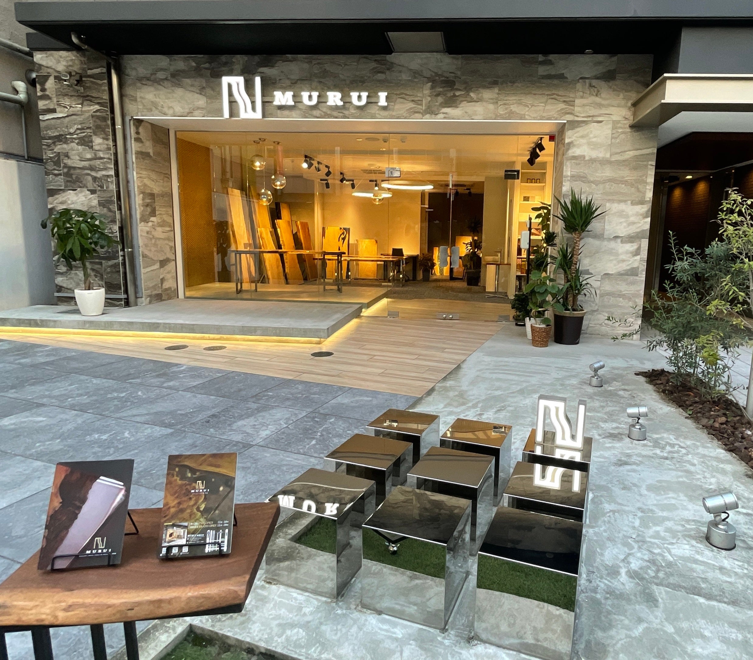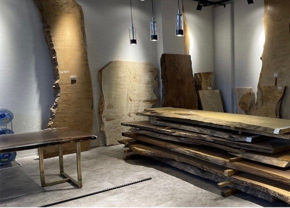 2021年よりインテリア事業に参入、レジンテーブルブランド「MURUI」を立ち上げ2022年5月より国内最大級の銘木市場がある「鳥飼銘木町」に店舗をオープン。