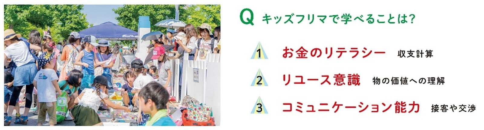 キッズフリマは、参加者を小学生のみに限定し、現金を使った実際の売り買いを通して金銭感覚を養うことができる体験型の教育イベントコンテンツです。これまで金融教育が不足していると言われて来た日本において、2022年4月から適用される新学習指導要項に金融教育が加わったことによる金融教育への関心と需要の高まりに応えるため、全国各地でのキッズフリマを展開をさらに加速して参ります。