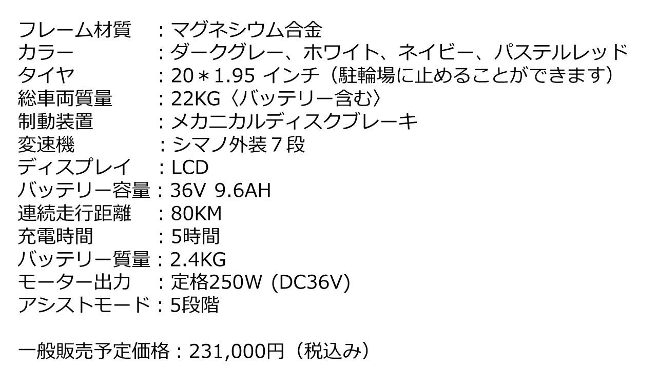 美しいマグネシウム合金製、V字フレームで老若男女乗りやすい!コンパクトながらフルサス搭載の本格派