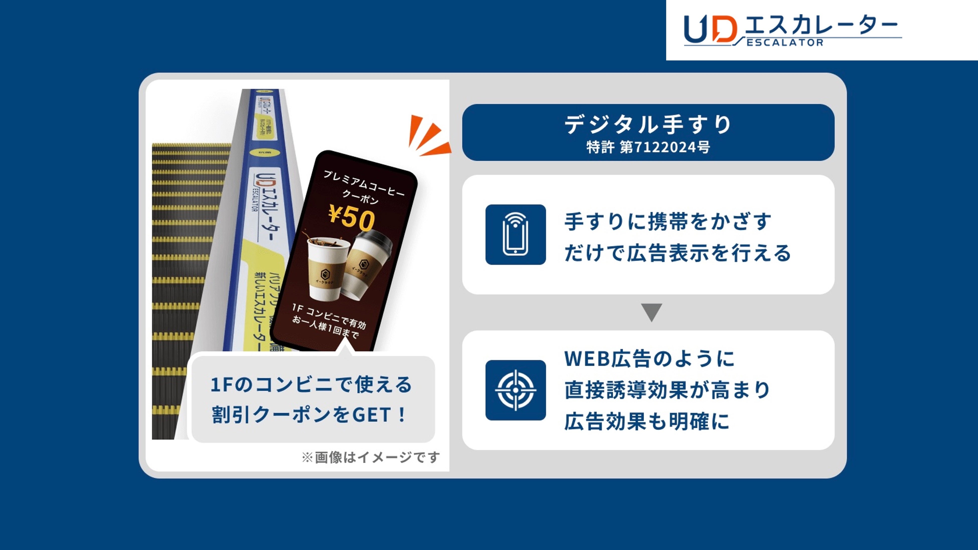 インでの訴求だけでなく、エスカレーター利⽤者の携帯電話を活⽤したデジタルデータの共有を同