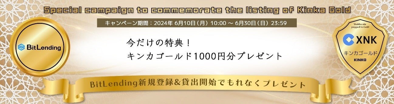 BitLendingでは、Kinka Goldの取り扱いを記念した「新規銘柄『KINKA Gold(XNK)』取扱開始キャンペーン」を本日より実施いたします。