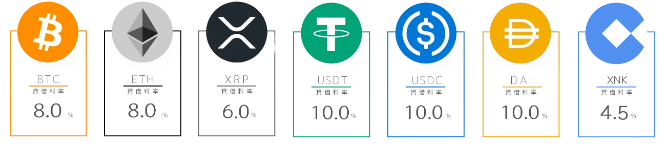 XNK及びその他暗号資産の貸借料率は以下の通りとなります。