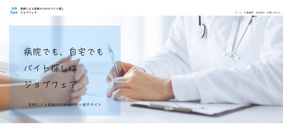 JobFare(https://jobfare.jp)は医師により運営され、厳選した医療機関を紹介する「医師による医師のための」バイト紹介サービスです。