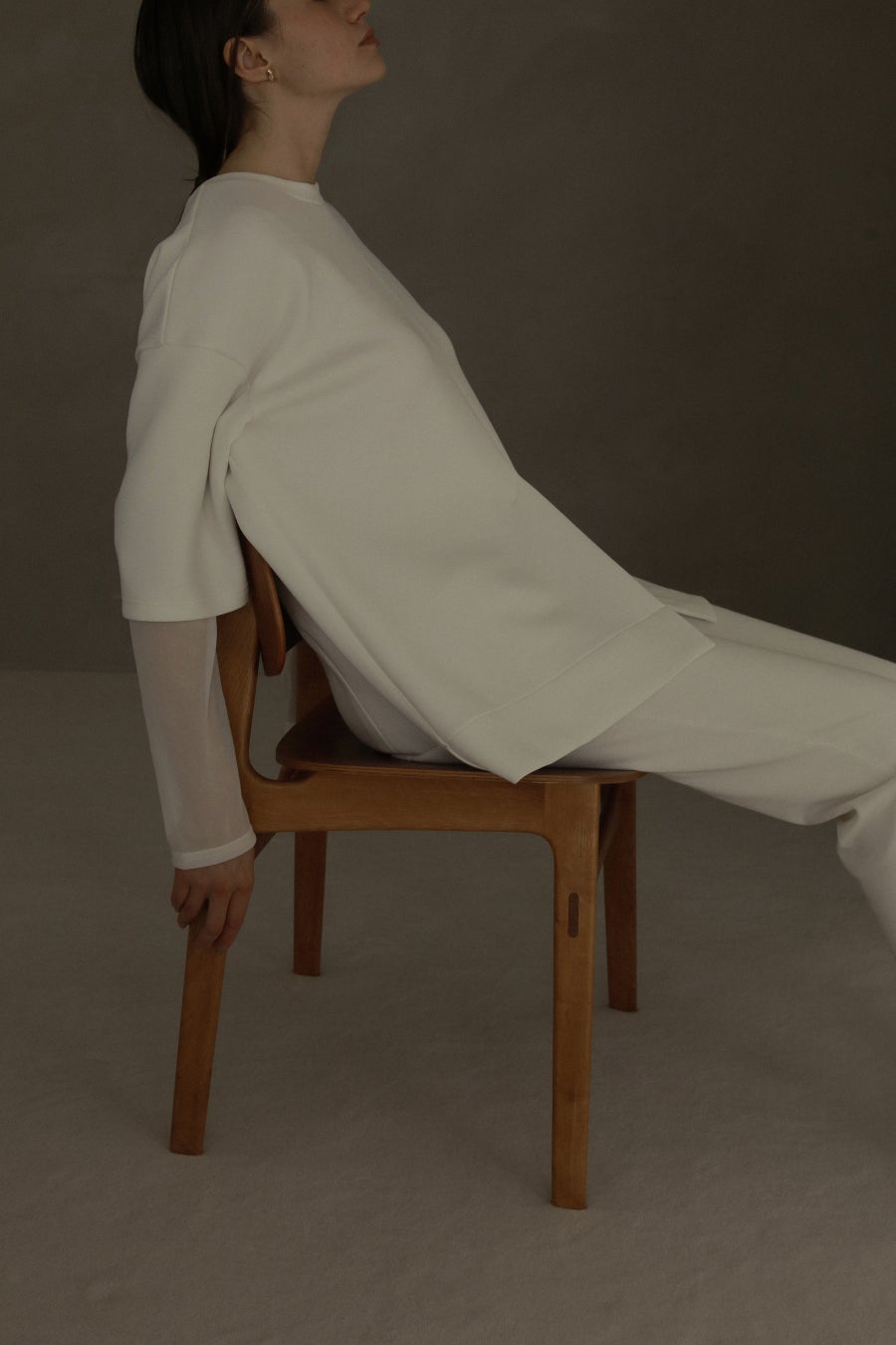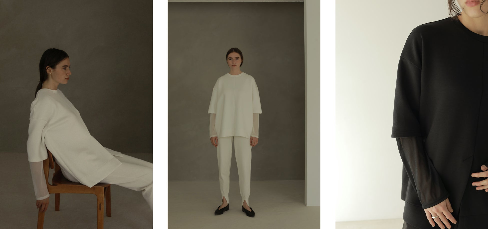 女性らしいシアー素材とカジュアルな雰囲気のカットソー素材を組み合わせたアイテムは、ブランドデビュー時より毎回完売する人気のシリーズ。女性らしいモノとカジュアルなモノを1つの商品に落とし込んだり、コーディネートで取り入れることが“MANOFらしさ”と根付いてきました。特別な1周年を迎えるにあたり、MANOFらしいディテールを落とし込んだ2つのアイテムを製作しました。