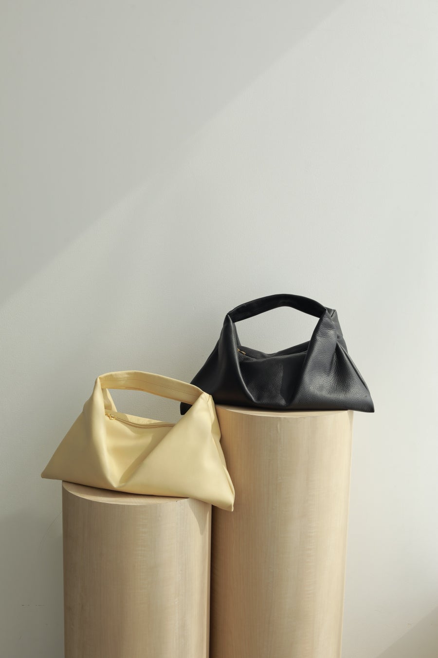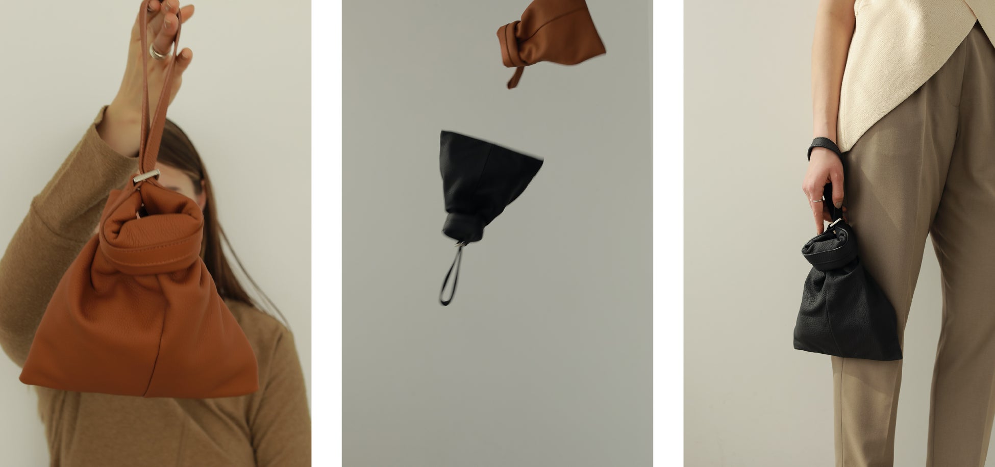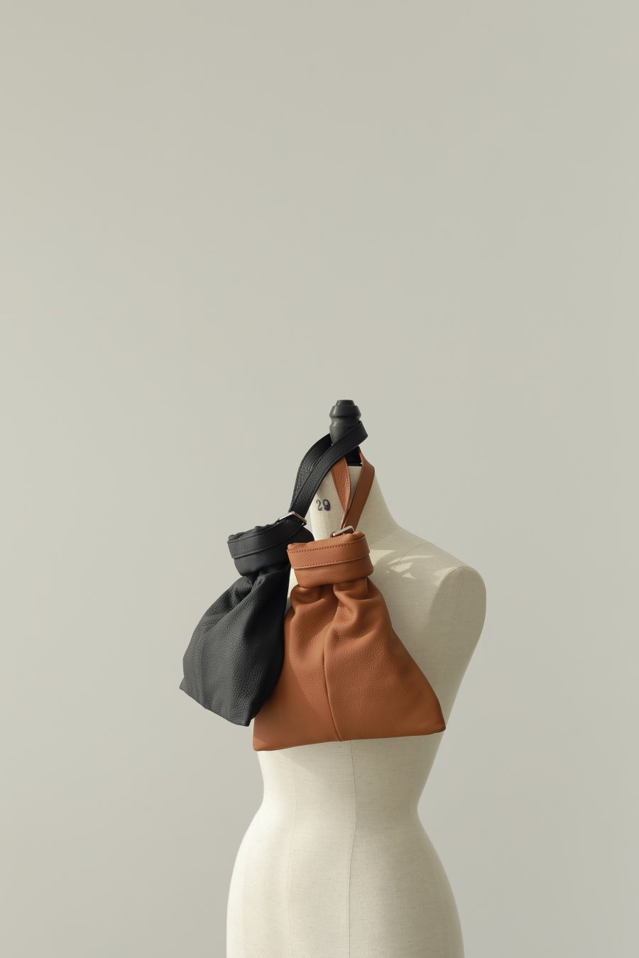 ITTI定番のお米袋をモチーフに派生したRICE BAGをMANOF流にアレンジ。テープ部分も同素材のレザーを使用し、モードで上質なデザインにしました。素材はサスティナブルで革新的な革を生み出しているデンマークのecco社製のシュリンクレザー"DIPLO SKY"を使用しています。自然なシボ感を強調させたこの革は、部分によって若干表情が変わりますが、タフな見た目にマットな質感が融合することで漂う上品さが、ほかにはない空気感を演出します。見た目に反した軽さが特徴の高水準レザーです。