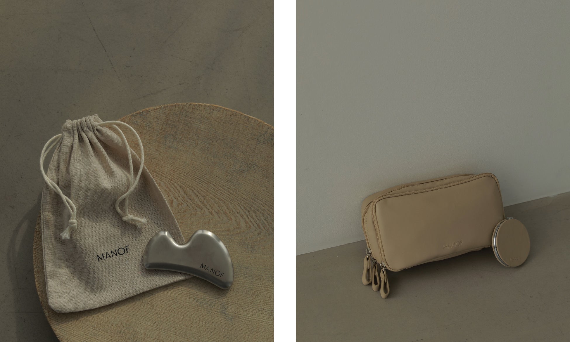 5月8日(月)よりポップアップストア限定ノベルティフェアを開催。税込33,000円以上ご購入でMANOFロゴ入りかっさ、税込55,000円以上ご購入でオリジナルポーチ&ミラーを先着でプレゼント。※なくなり次第終了