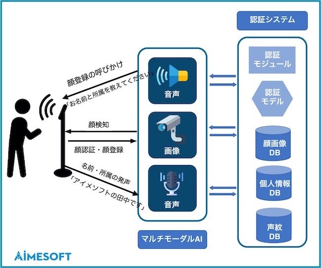 マルチモーダルAIをベースにした顔認証技術の特徴は、ユーザがシステムに音声で話しかけて顔登録ができる点です。