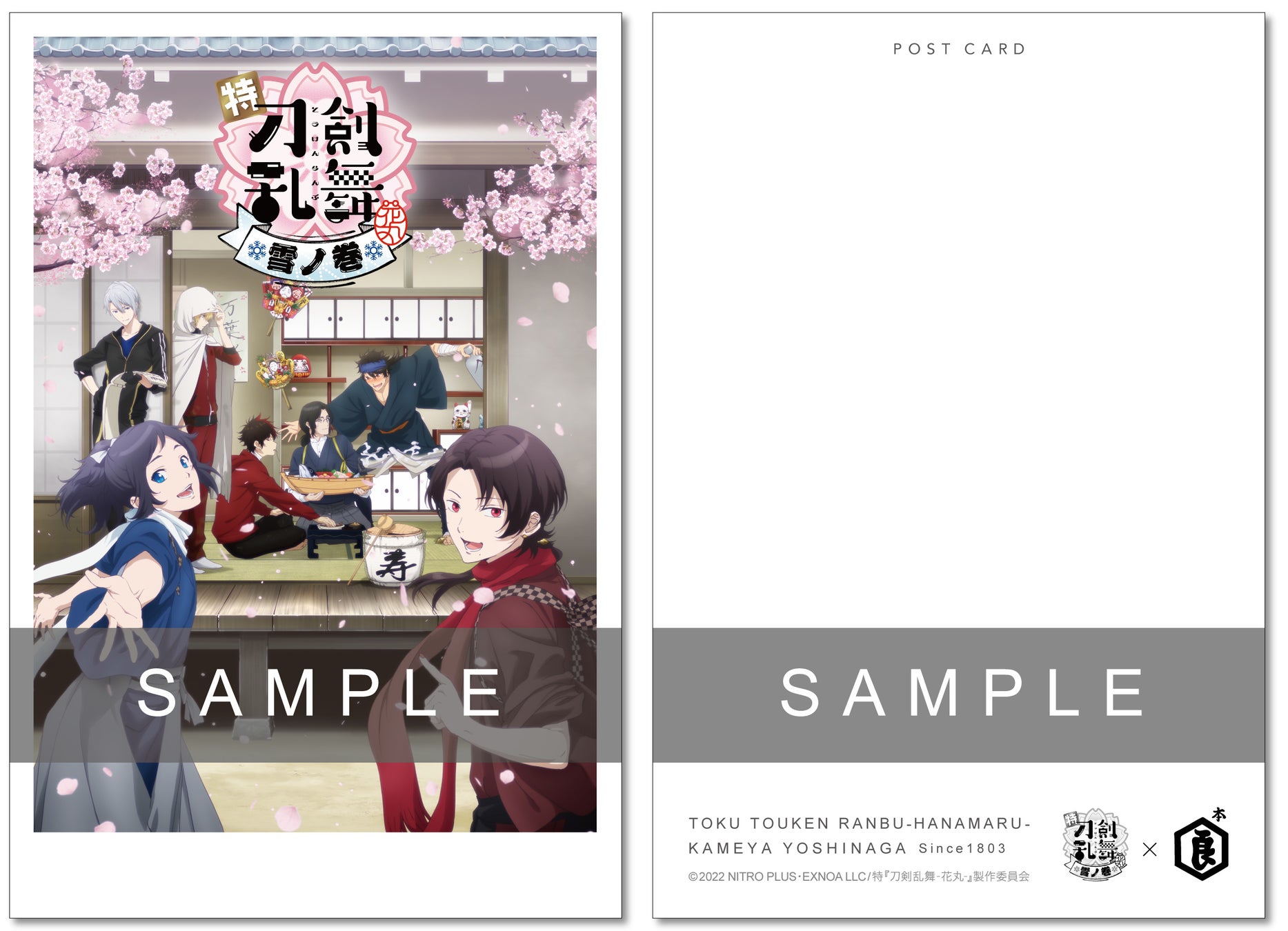 亀屋良長株式会社(本社:京都市)は、特『刀剣乱舞-花丸-』~雪ノ巻~の公開を記念し、限定コラボレート商品を亀屋良長オンラインストアで2022年5月30日(月)より予約受付開始、本店・ジェイール京都伊勢丹店で6月1日(水)より限定販売いたします。