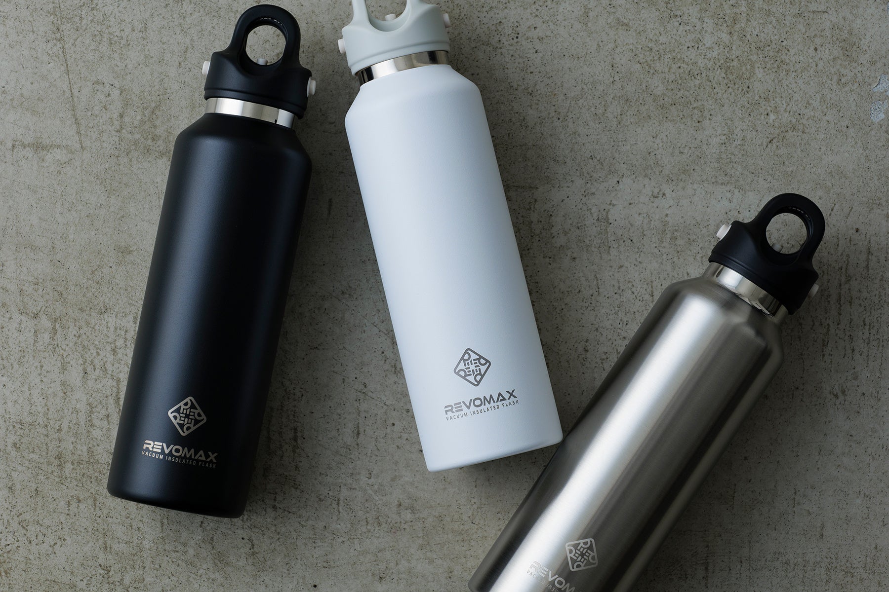 国際特許取得の独自キャップを搭載したREVOMAXはワンプッシュの一秒開閉可能、また真空断熱二重構造、ダブル密閉により保温保冷性能も業界トップクラスです。