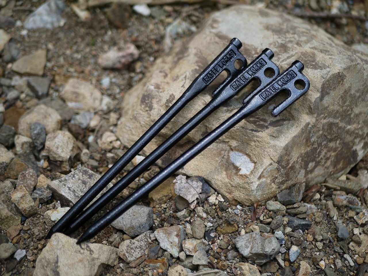 これまでリリースしてきたテントと同様に付属品も充実させております。特に注目すべきは今回から採用となった完全オリジナルの自在金具。どこにもない同ブランド独自の形状で、非常に使いやすくなっております。また今までは鋳造ペグを付属しておりましたが、今回から鍛造ペグへとスペックアップしております。