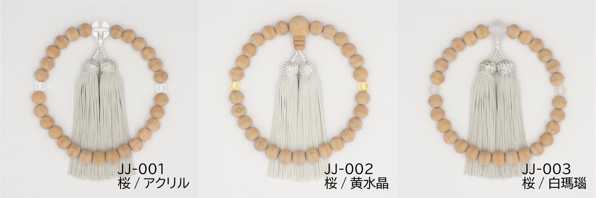 今まで男性用・女性用と区別されていた数珠とは違い、性差を感じさせない配色と男性用・女性用数珠の中間サイズの玉を使用し、学生から大人まで持てるデザインに仕上げました。