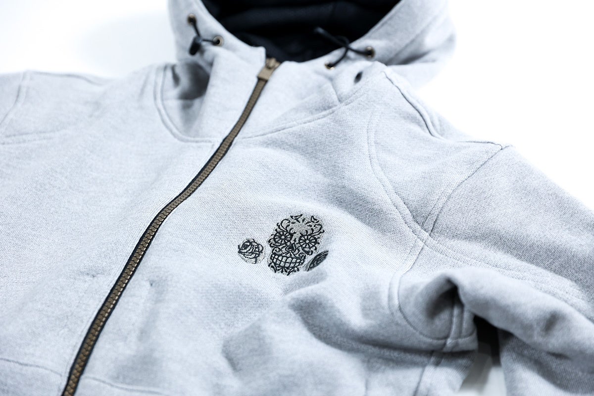 ジッパーには特注のYKK製撥水ジッパーを使用。引手部分にはブランドロゴのスカルをデザイン。ありがちなジッパー部分からの服の中への浸水も軽減できます。